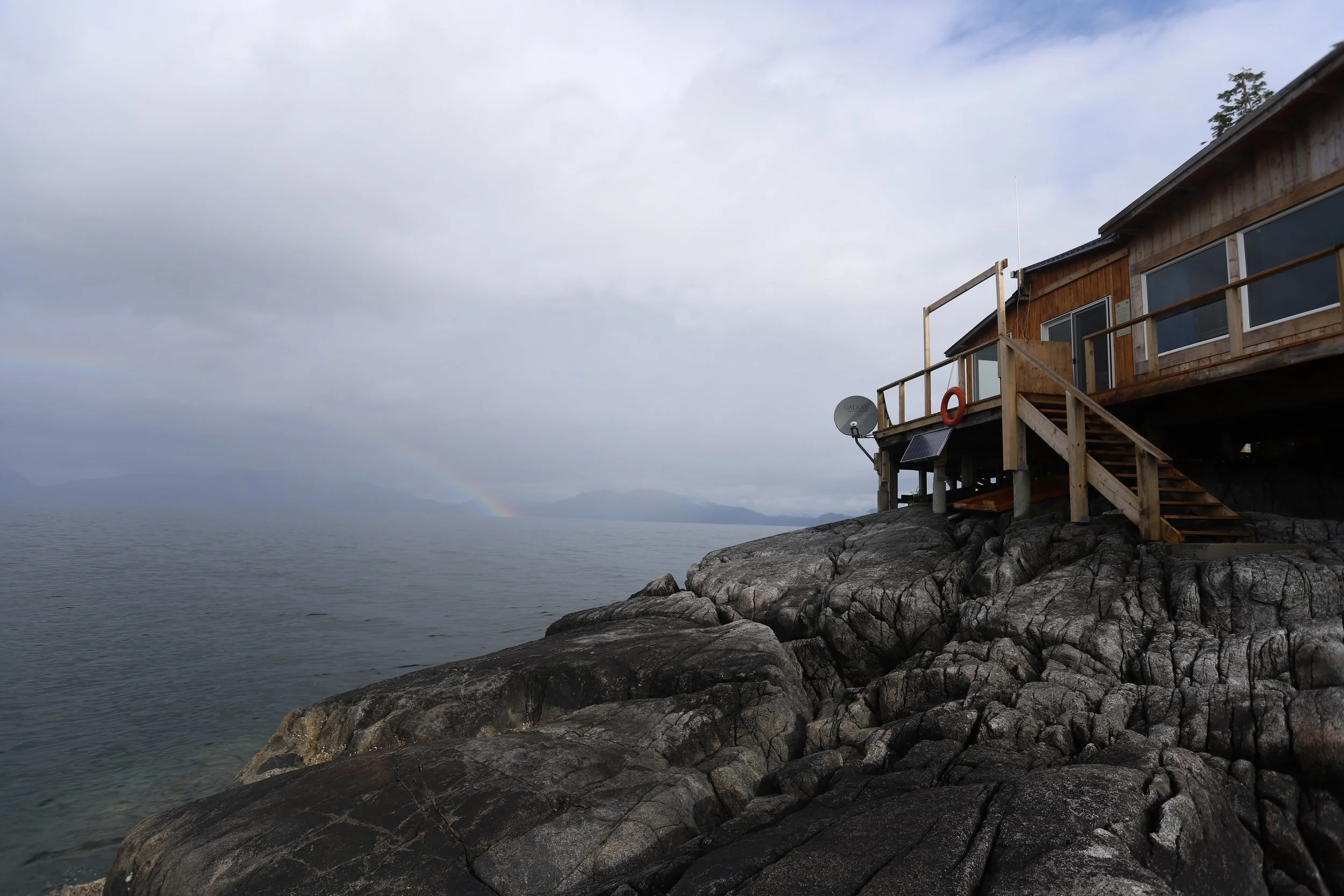 A wrap-around cedar deck gives the SWAG team unobstructed views of Squally Channel. Roughly eight kilometres across, the narrow fjord is a hotspot for marine mammals and part of a future shipping route for a natural gas facility under construction in nearby Kitimat.